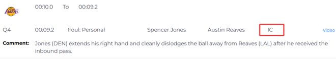 唯一一次錯判,發生在距離比賽結束還有9.2秒。裁判報告指出,掘金的瓊斯在裏夫斯接到邊線發球後,伸出右手幹淨利落地把球斷了下來。而當值裁判吹的是瓊斯犯規,這是一次錯判,裏夫斯本不該獲得兩次罰球機會。這個回合,裏夫斯兩罰兩中,幫助湖人縮小分差。湖人明顯獲利,掘金吃虧。