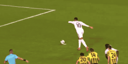 隨後第43分鍾,姆巴佩禁區穿襠過人後小角度抽射打高了,錯失梅開二度的機會,皇家馬德裏上半場依然一球領先凱拉特。